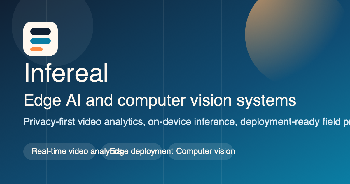 Infereal; retail, manufacturing, smart access, event ve industrial monitoring senaryoları için video analytics, on-device inference ve deployment-ready computer vision sistemleri kurar.